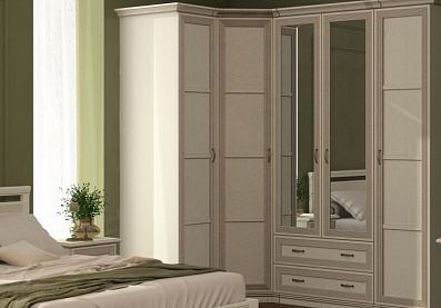 Шкаф Кантри с 2 выдвижными ящиками, полкой и штангой для одежды с зеркалом Валенсия