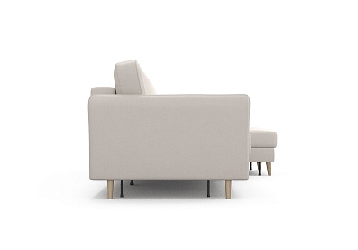 Диван АННИКА NEW 3-х местный с оттоманкой и светлыми опорами Серо-бежевый (Woolly 910), Рогожка