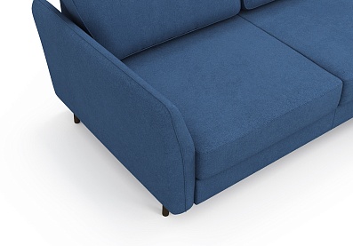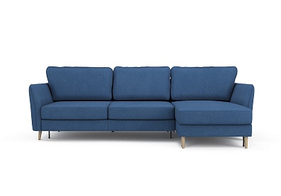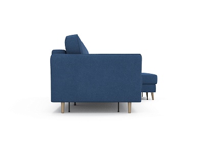 Диван АННИКА NEW 3-х местный с оттоманкой и светлыми опорами Темно-синий (Woolly 783) , Рогожка