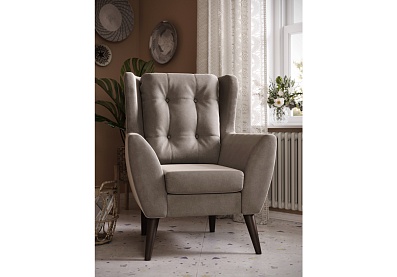 Кресло Ладога, Д1 (опоры: клен старый) Светло-серый (Velutto 12), Велюр