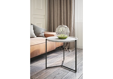 Стол журнальный Брун Серый мрамор, Черный МДФ