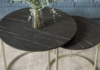 Комплект журнальных столов Лесло Черный мрамор, Титан МДФ