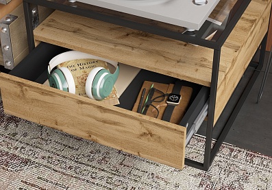 Стол журнальный Эйд с выдвижным ящиком Дуб вотан ЛДСП Стекло