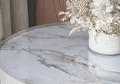 Стол журнальный Тэйлер Калакатта, Хром Стекло МДФ