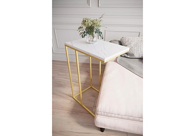 Стол придиванный Агам Голд Золотой Белый мрамор МДФ