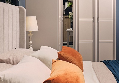 Шкаф Кантри угловой с зеркалом Кашемир серый