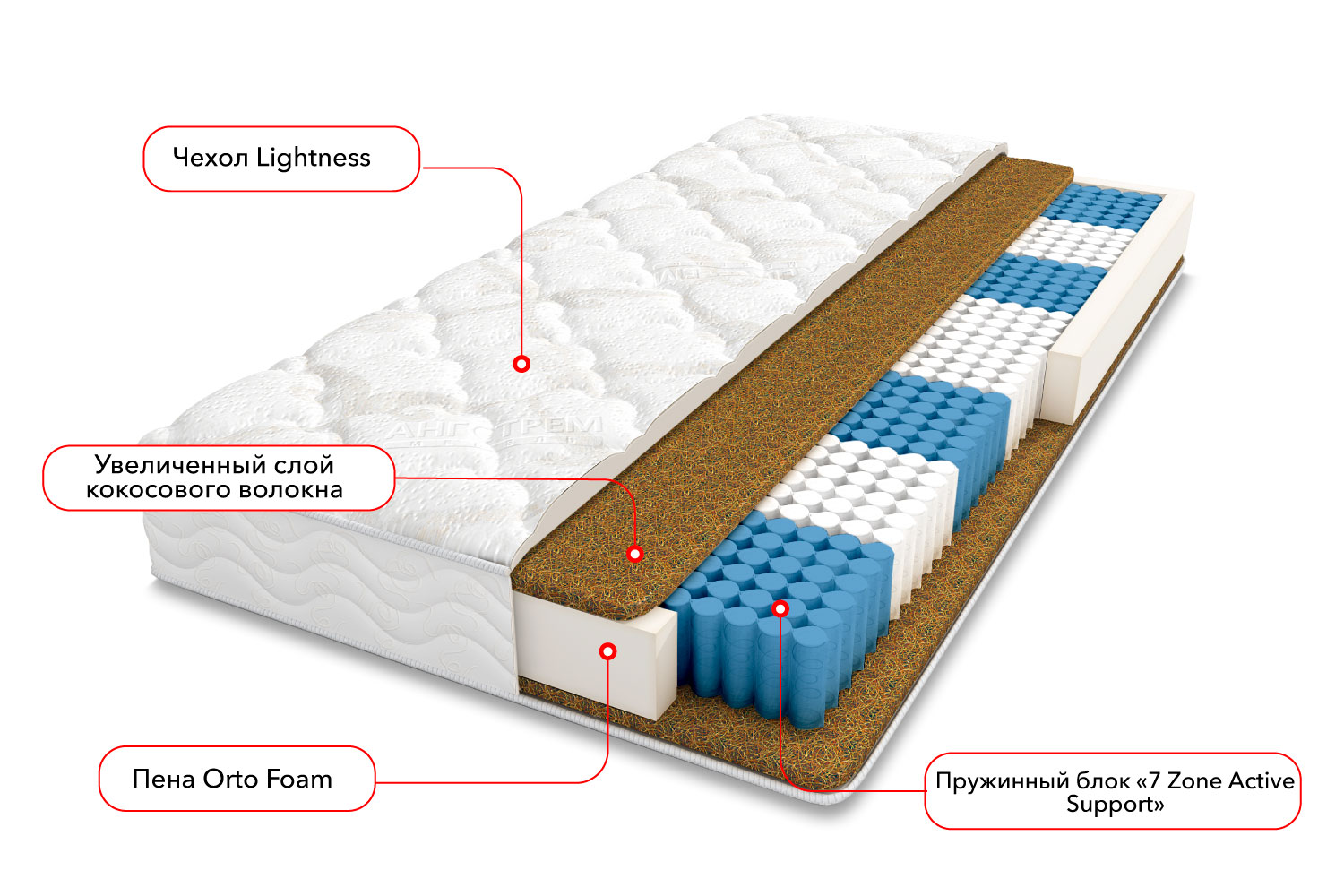 - Несъемный чехол Lightness (70% хлопок, 30% полиэстер) — 3 см;