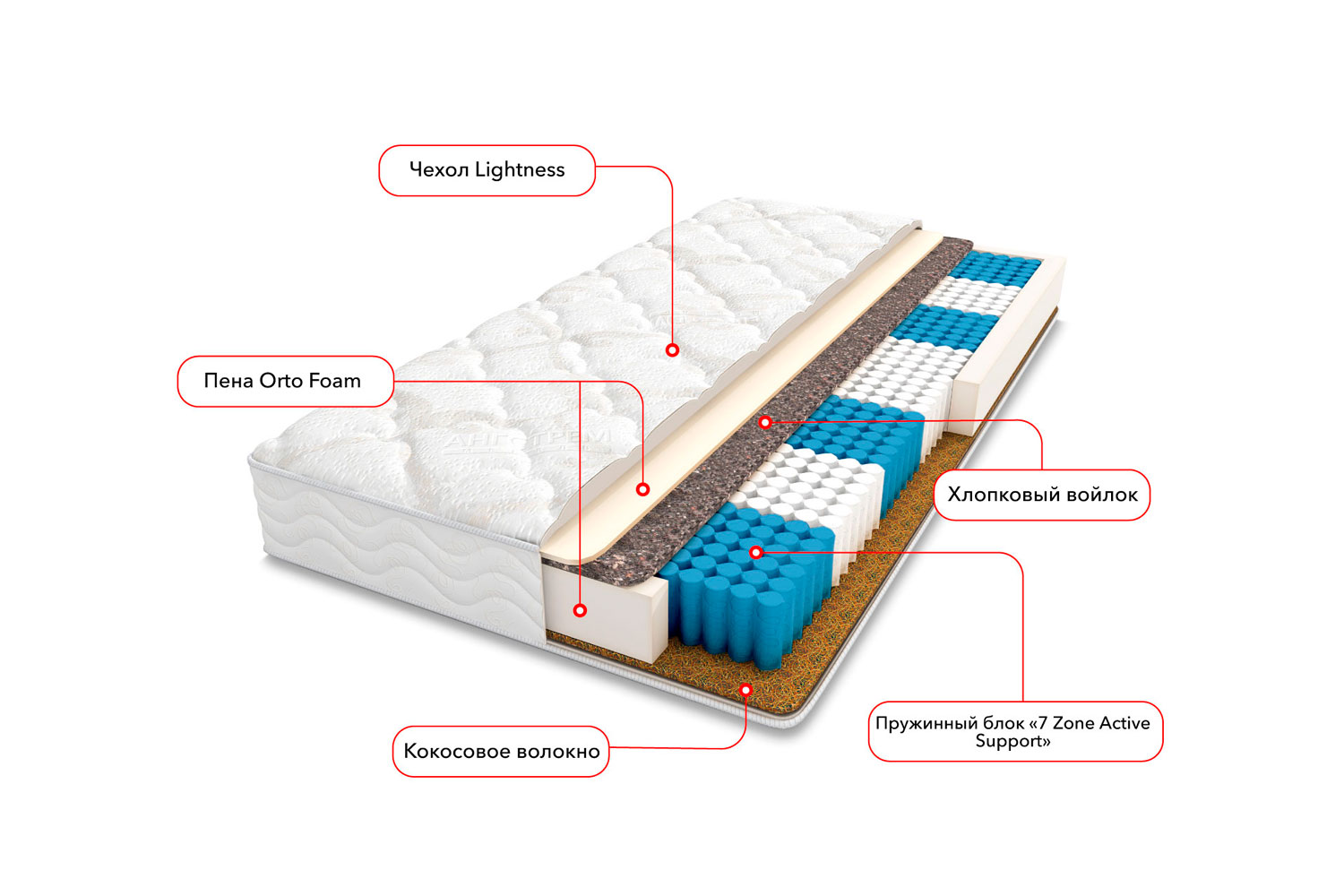 Модель «Рим» отлично подойдет для подростков, пожилых людей и лиц с заболеваниями позвоночника. Семизональный независимый пружинный блок с ортопедическими свойствами обеспечивает «эффект невесомости», который, в свою очередь, гарантирует качественный ночной отдых и снятие мышечного напряжения. Более мягкую сторону матраца из пены Orto Foam можно использовать в холодное время года, а жесткую, из кокосового волокна — жарким летом. Гигроскопичная ткань в сочетании с комфортным слоем из пенополиуретана позволяет принять во время сна максимально удобное положение.