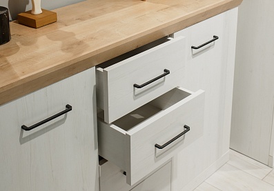 Изделие имеет возможность крепления к стене для повышения устойчивости конструкции и экономии места в помещении. При изготовлении используется крепеж и комплектующие от ведущих европейских производителей, что гарантирует долговечность службы комода. Скрытые направляющие с демпфером обеспечивают идеальную амортизацию, практически бесшумную эксплуатацию, надежную фиксацию и плавное движение ящиков.