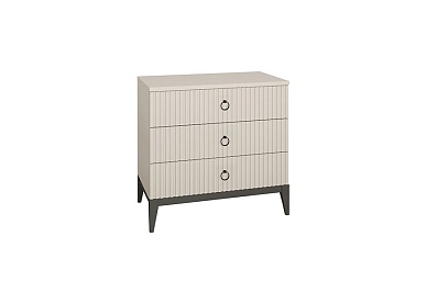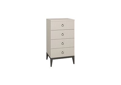 Элегантный лаконичный комод с четкими прямыми линиями будет превосходно смотреться в спальне, гостиной, прихожей, оформленной в стиле ар-деко или минимализм. Четыре выдвижных ящика визуально объединены рисунком квадратных ручек. Изящный сложный оттенок «серый кашемир», фурнитура и опоры «под золото» только усиливают эффектность мебели.