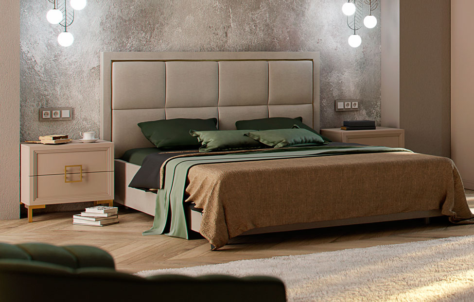 - Спальня Дольче выполнена в стиле эклектики, а также соединяет в себе стиль ар-деко в современном прочтении и минимализм. К строгим формам и безупречной геометрии добавлена гладкая текстура кашемира, позволяющая смягчить декор и подарить коллекции шлейф тонкой роскоши с золотыми вставками;