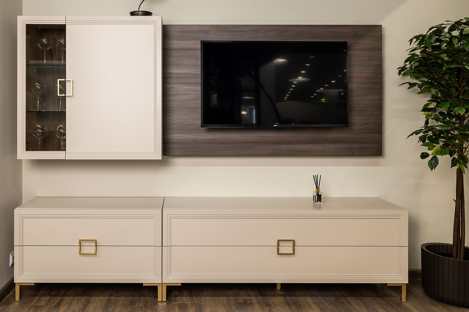 - Цвет задней стенки за рамочным фасадом из стекла: трюфель коричневый;