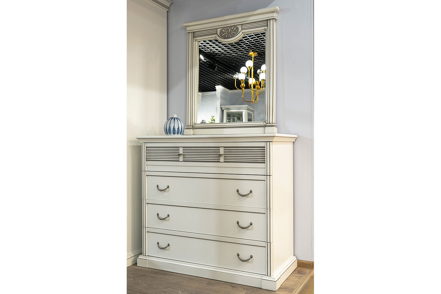 - Четырехстворчатый шкаф укомплектован зеркалом. Благодаря этому вы можете увидеть свой образ сразу после переодевания, не выходя в ванную или коридор.
