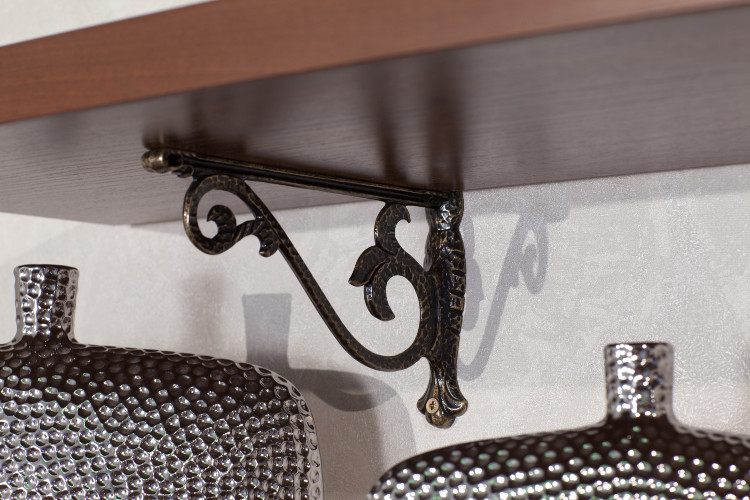 - Полки навешиваются на стену на декоративных менсолодержателях (МакМарт);