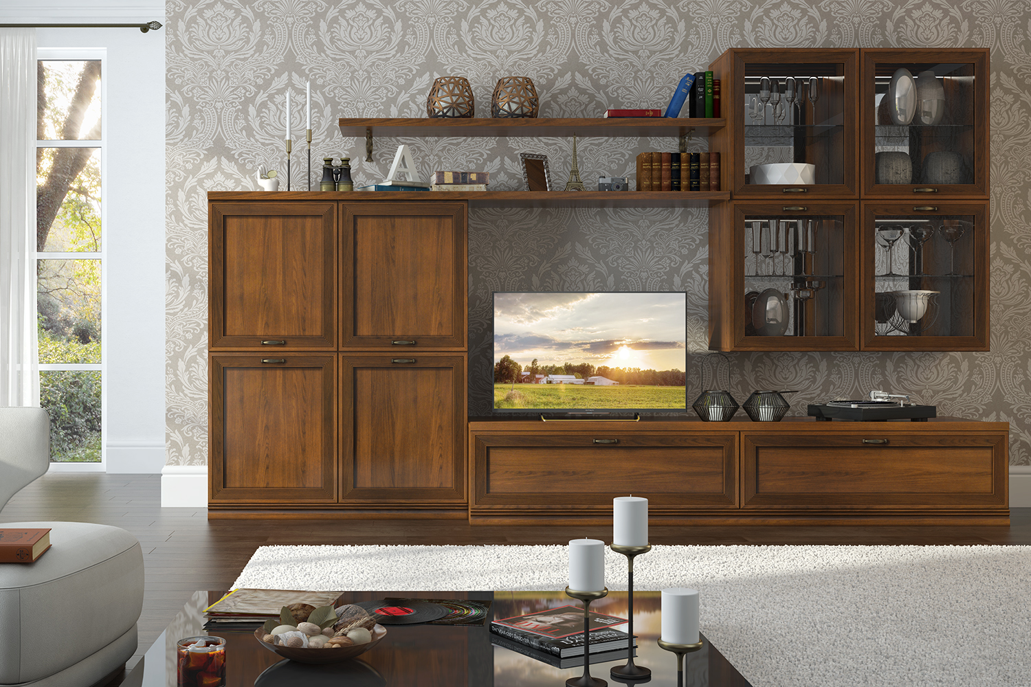 - Отделка фасадов выполнена испанским акриловым лаком и патиной (эффект состаренного дерева);