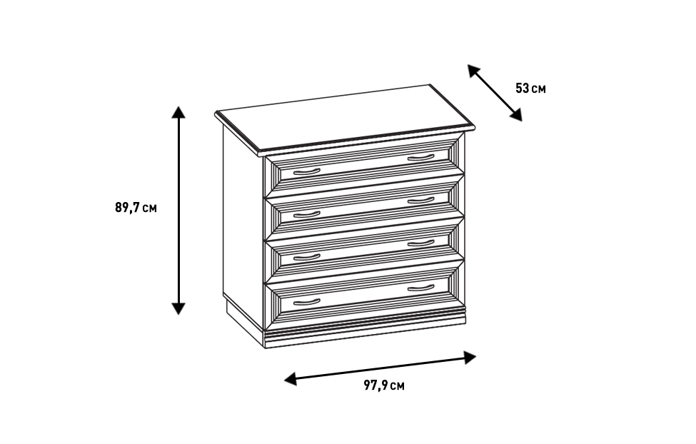 - Комод нужно использовать по назначению, не допускать установки тяжелых предметов на верхнюю крышку. Максимальная распределенная нагрузка на верхнюю крышку — не более 8 кг;