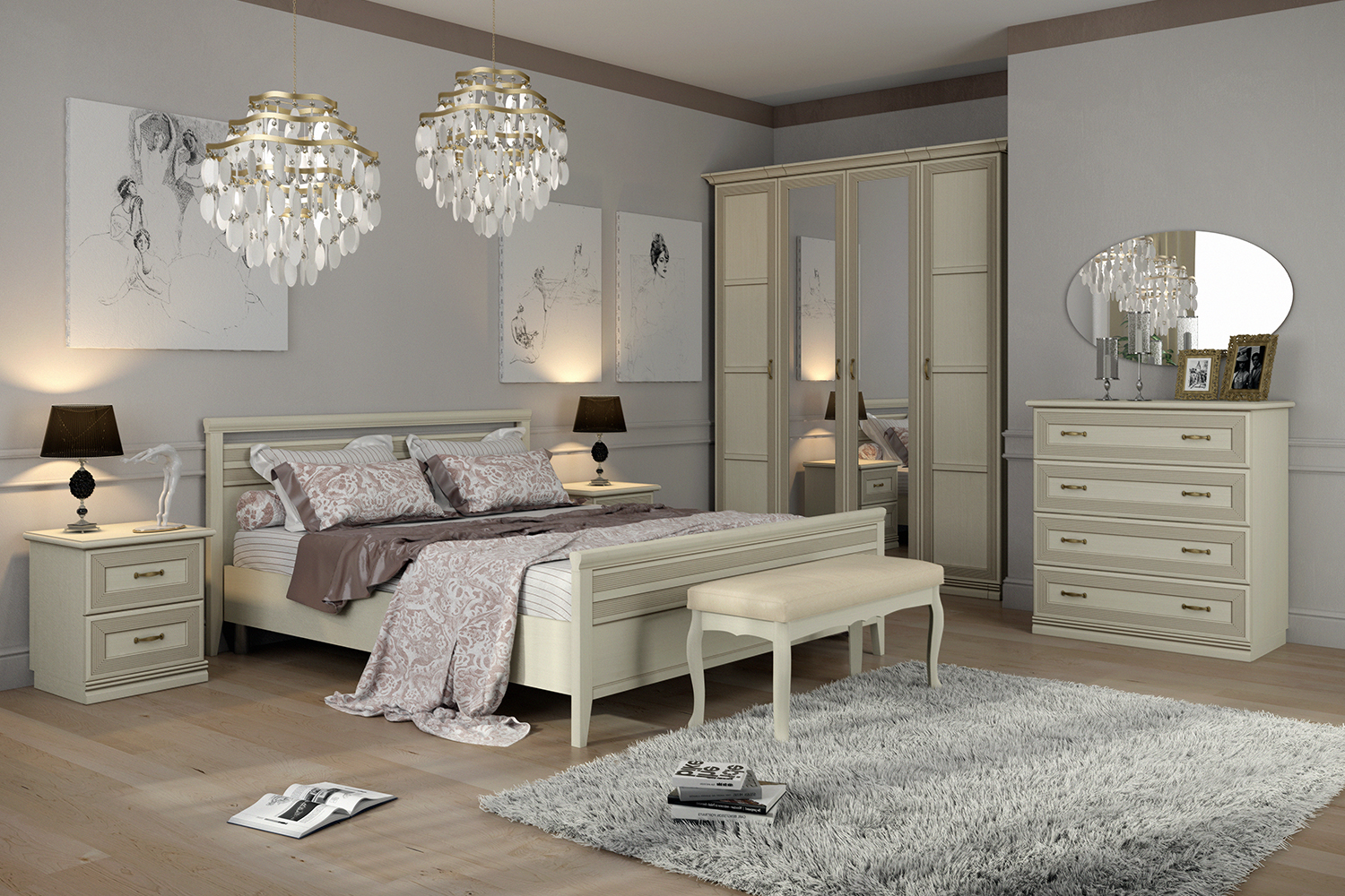 - Cпальня «Адажио» выполнена в стиле традиционной итальянской классики с элементами современности. О том, что это именно классика, нам говорят строгие прямые карнизы, придающие спальне законченность и шарм, красивый резной цоколь, который изысканно закрывает опоры и, безусловно, нежный цвет «валенсия», который делает спальню легкой и воздушной;