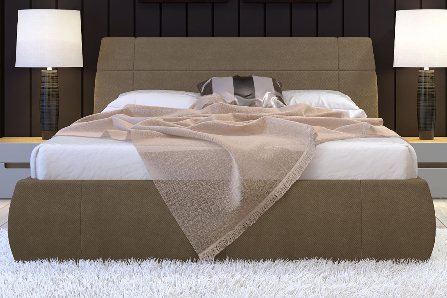 Ненавязчивый дизайн, сдержанный цвет «Анри» достойно украсят современную спальню в эко-стиле. Двуспальная кровать с велюровой отделкой создаст атмосферу гармонии, спокойствия и уюта, необходимую для хорошего отдыха и крепкого сна.