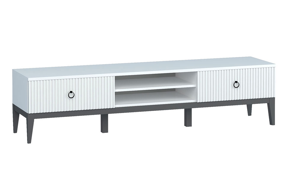 Ну что, девочки, расскажу как есть про нашу новую тумбочку под телик. Выбирала долго - хотелось чего-то не как у всех, но и не за космические деньги. В итоге остановилась на этой в белом цвете с черными ручками.