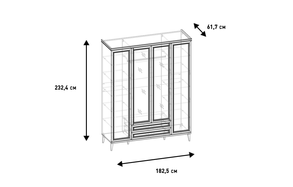 – описание: стиль английский, неоклассика, назначение для одежды, размер 232.3x182.5x61.7 см, цвет ярко-серый.