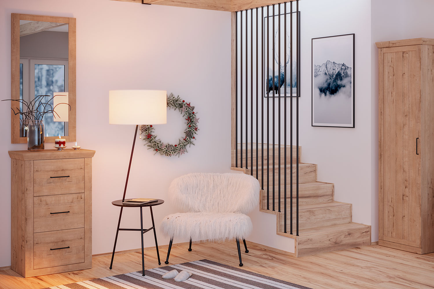- Мебель выполнена в цвете «дуб бунратти», имитирующий натуральное дерево;
