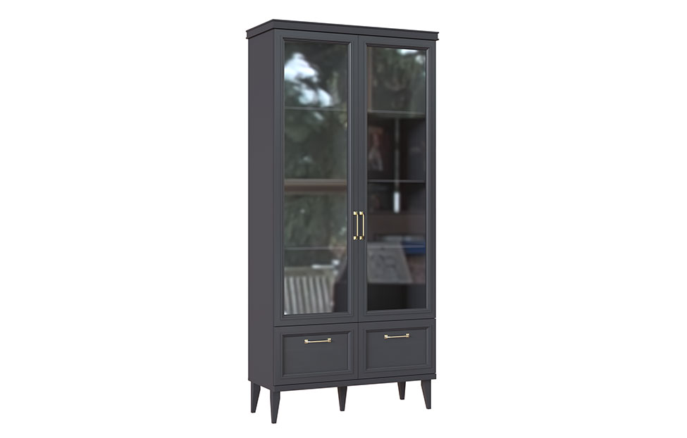 • Шкаф 2-створчатый с 2 стеклянными фасадами и 2 выдвижными ящиками;