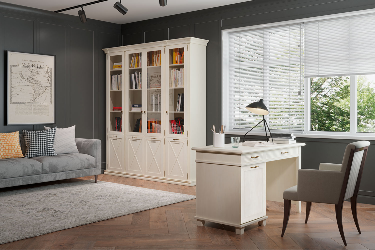 - Самые светлые мысли и идеи придут к вам в кабинете, оформленном с помощью коллекции Кантри. Ведь окружающие спокойствие и безмятежность —залог позитивного мышления;