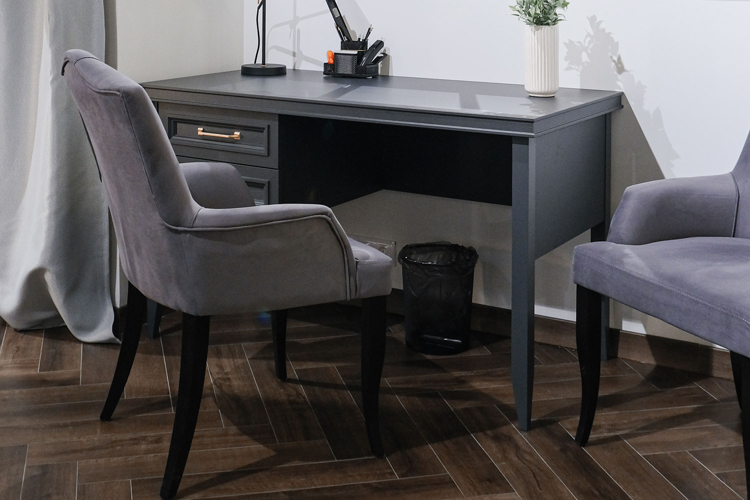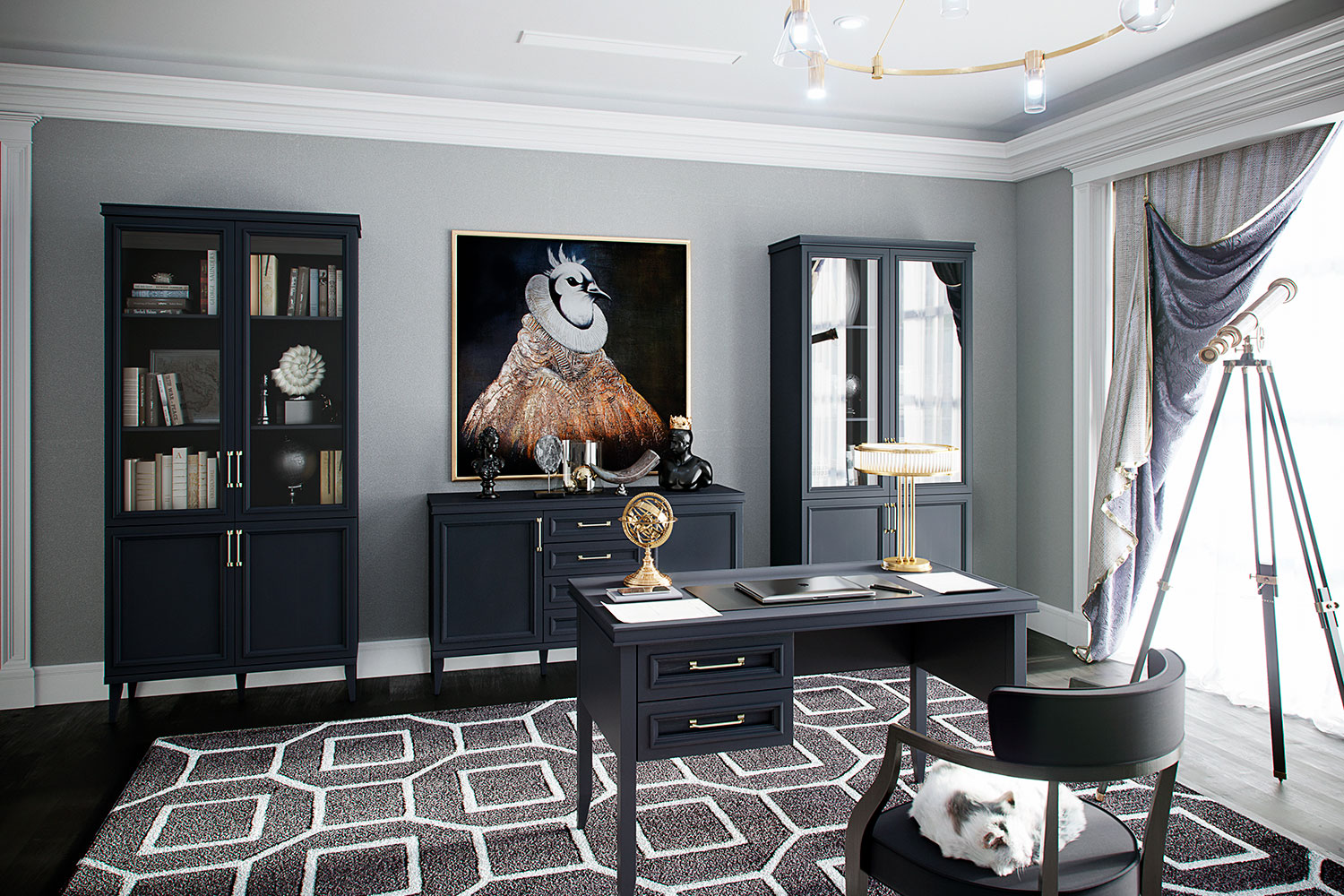– описание: стиль английский, неоклассика, размер 78x130x65 см, цвет серый уголь, назначение для работы, для дома.