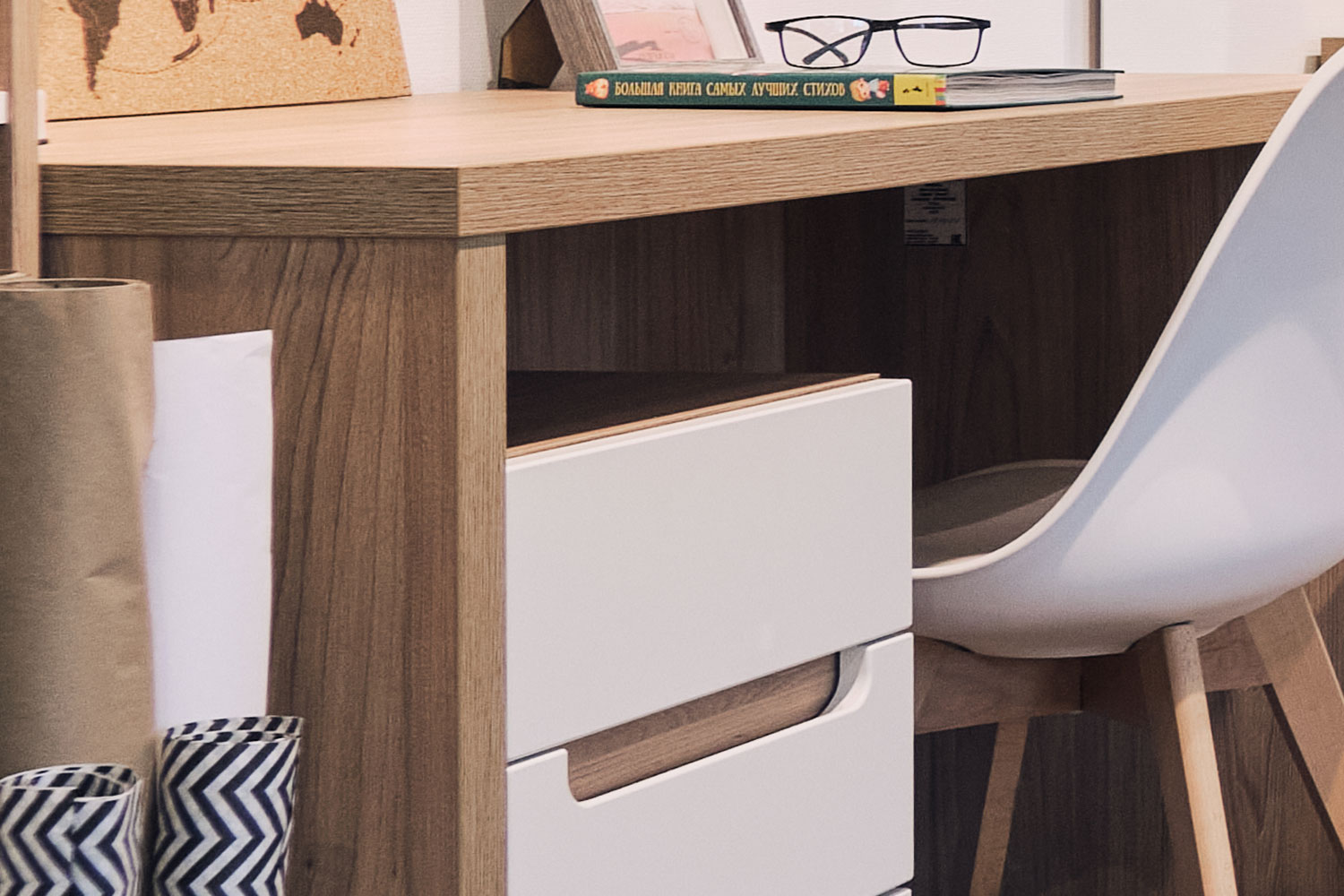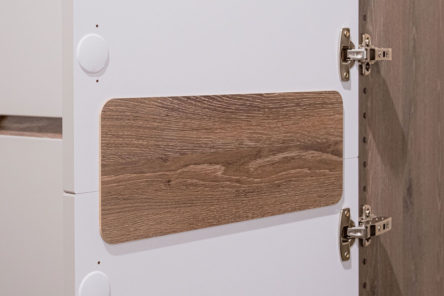 - В выдвижных ящиках используются направляющие скрытого монтажа со встроенным доводчиком. Это позволяет легко и почти бесшумно выдвигать-задвигать ящики, а также обеспечивает надежную фиксацию ящика и гарантирует длительный срок службы даже при высокой нагрузке.