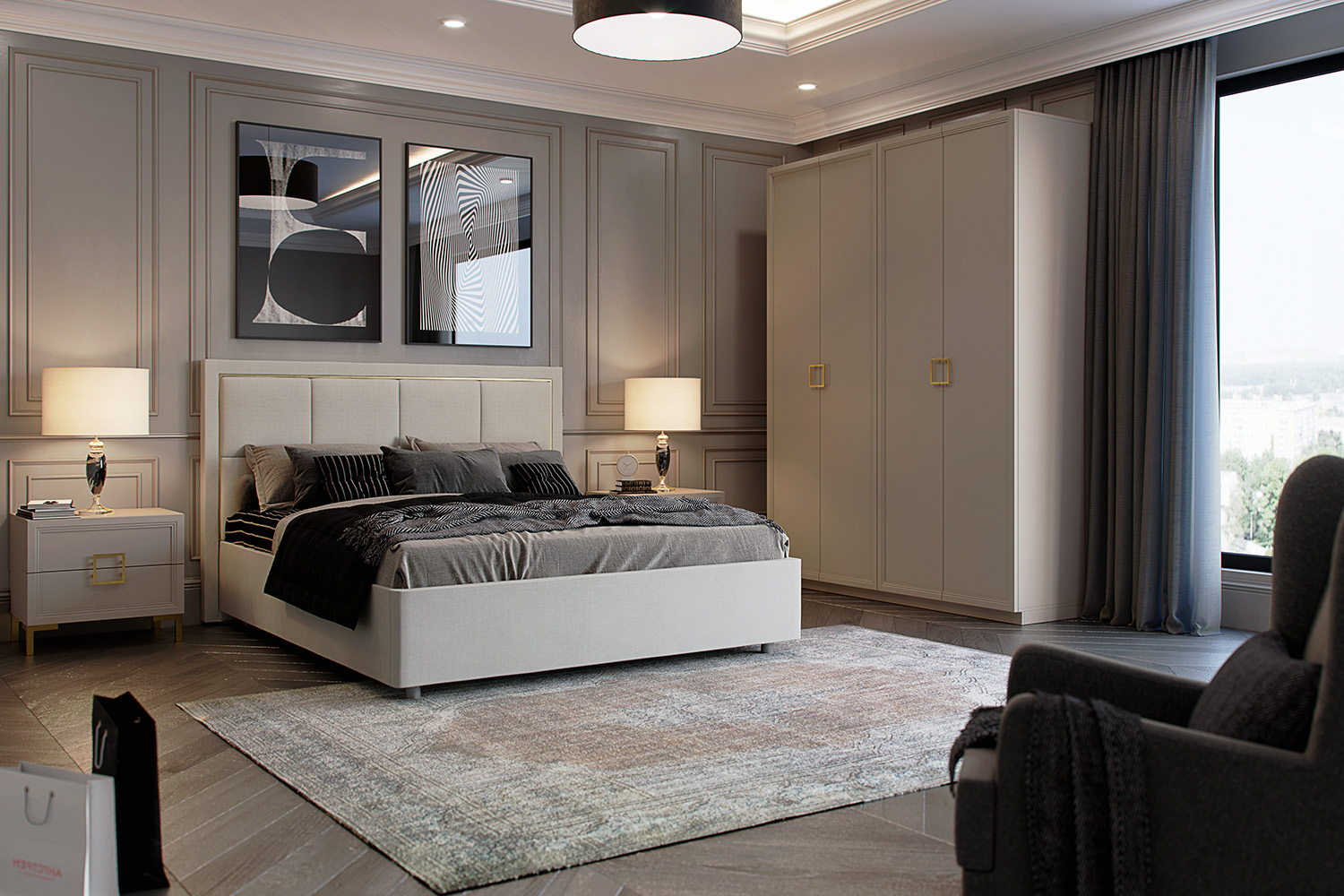 – описание: стиль ар-деко, минимализм, цвет кашемир серый, размер 120x164x213 см, назначение для дома, для спальни.