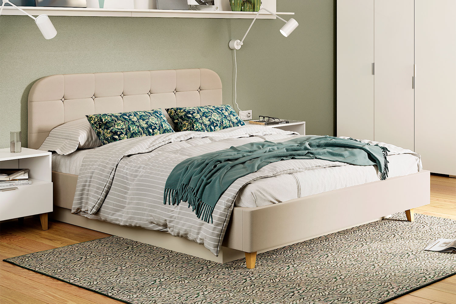 Кровать Олса имеет оригинальный внешний вид, эргономичную форму и размер. Изголовье декорировано пуговицами.