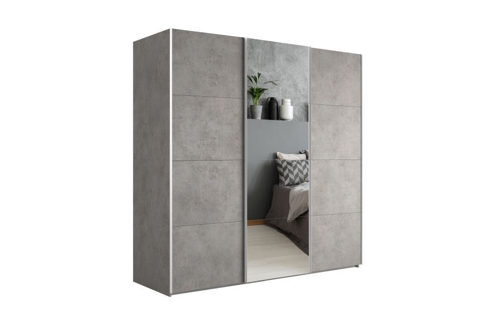 Купить Шкаф-купе Lux 210x230 см с одним зеркалом, бетон в интернет-магазине мебели «Ангстрем»