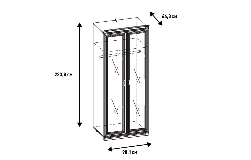 - Высота модуля — 223,8 см с учетом высоты лицевого карниза высотой 6,2 см;