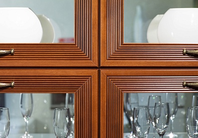 - Фасады вручную покрыты патиной и испанским лаком, который отличается повышенной атмосферо- и светостойкостью и не желтеет со временем;