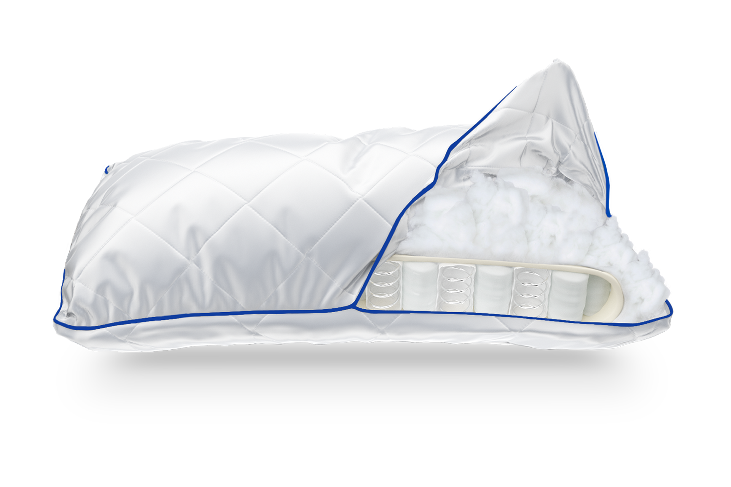 Наполнение обычной набивной подушки дополнено мини блоком назависимых пружин, которые обеспечивают анатомически правильное положение шейного отдела позвоночника во время сна. Исключаются зажимы и напряжение, это поможет снизить вероятность дискомфорта и головных болей при пробуждении . Кроме того, мини пружинки позволят Вашей подушке дольше сохранить первоначальную форму и упругость. Рекомендована для сна на боку.