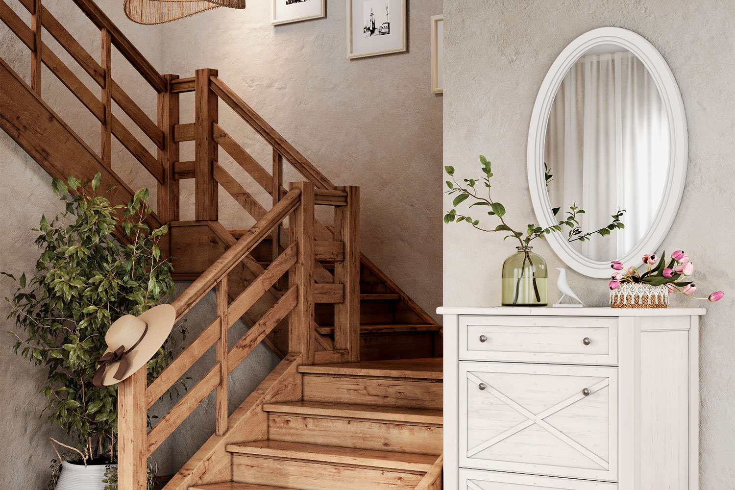 - Мебель Кантри украсит легкий классический интерьер прихожей;