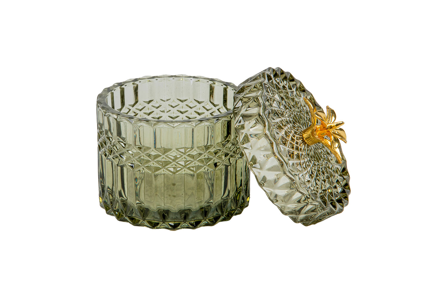 Стеклянная шкатулка, Д90 Ш90 В100, оливковый, Fancy32