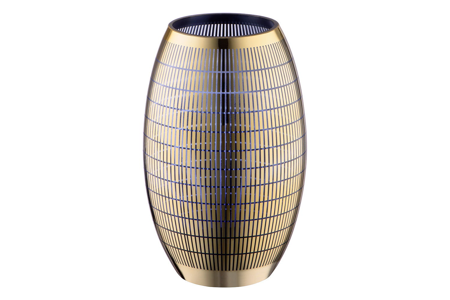 Стеклянная ваза с напылением — это достойный подарок и шикарный предмет интерьера. С живыми цветами она освежает пространство, а с искусственной композицией становится стильным акцентом. Устойчивая, с плотным стеклом, ваза выдержит даже большие букеты. Покрытие нанесено качественно и смотрится дорого. Чтобы сохранить яркость напыления, протирайте вазу насухо после мойки. Источник теплого света, расположенный вблизи изделия, подсветит его достоинства: ребристые грани заиграют золотом.