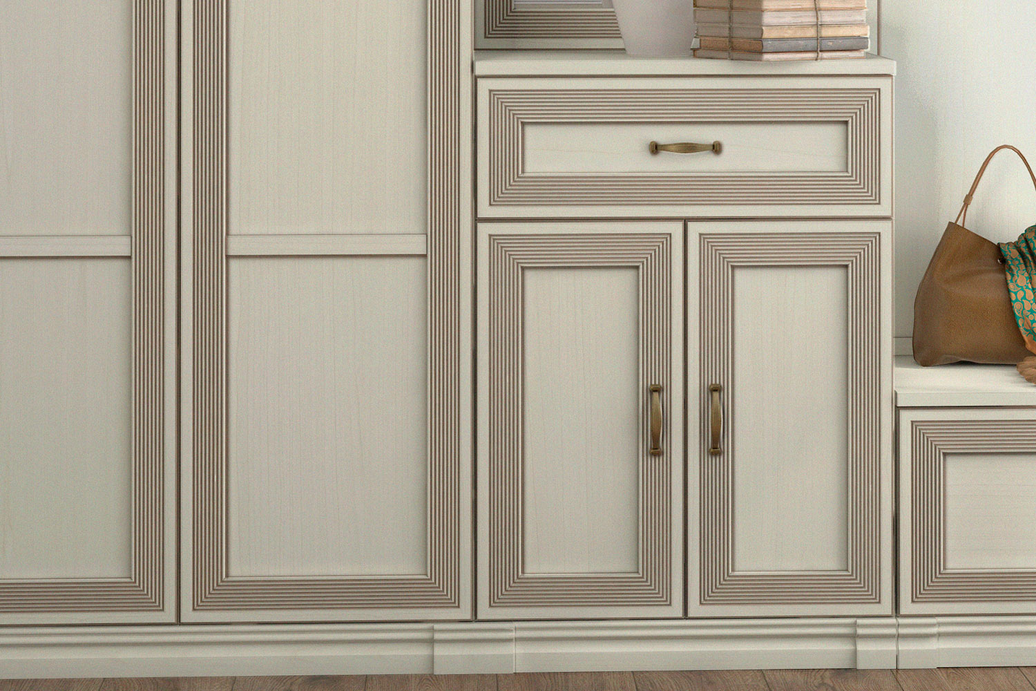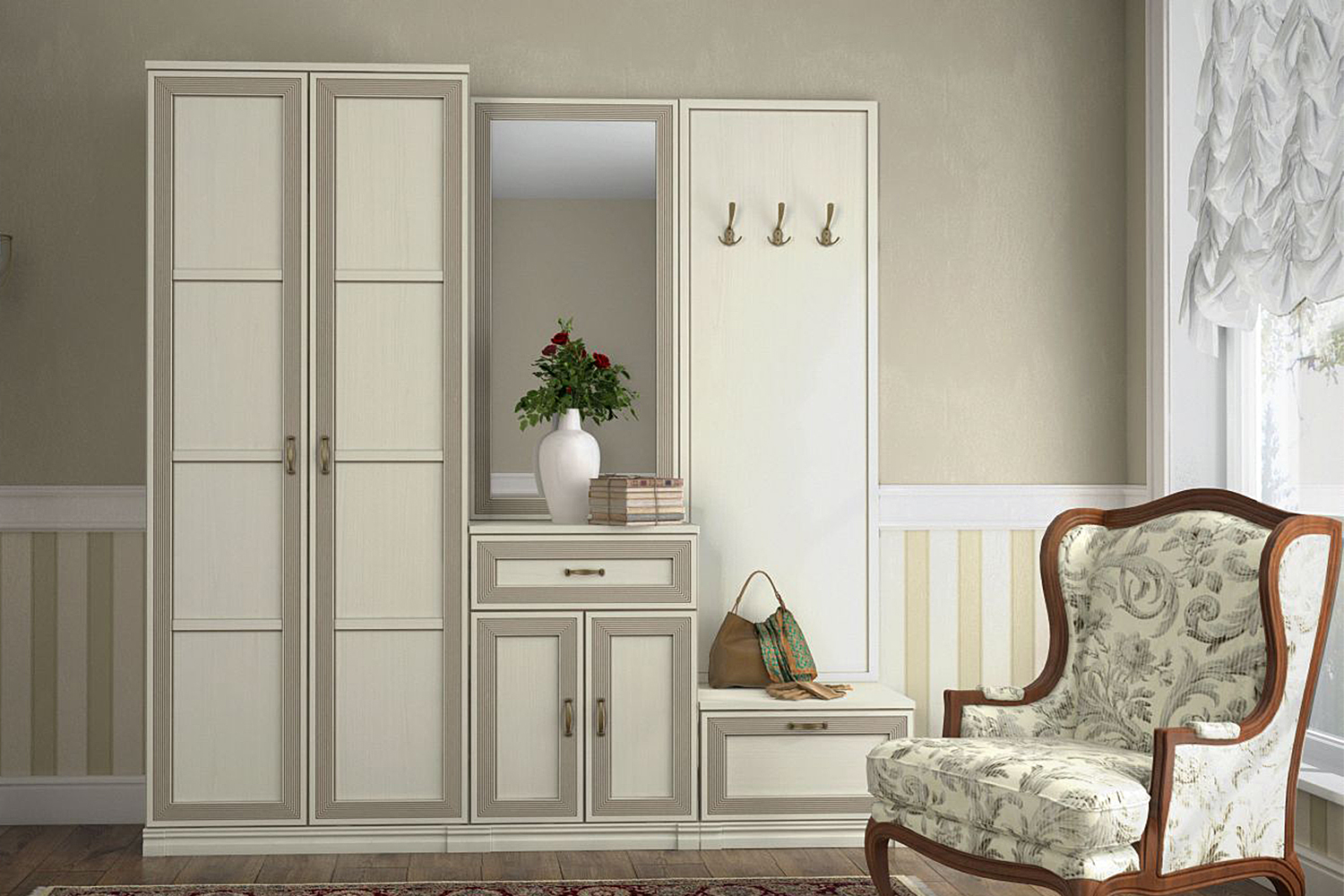 - Адажио — образец сдержанности и изящества, стиля и элегантности. Мебель из коллекции подойдет не только к классическим интерьерам, но и к прихожим в стилях фьюжн, контемпорари и эклектика;
