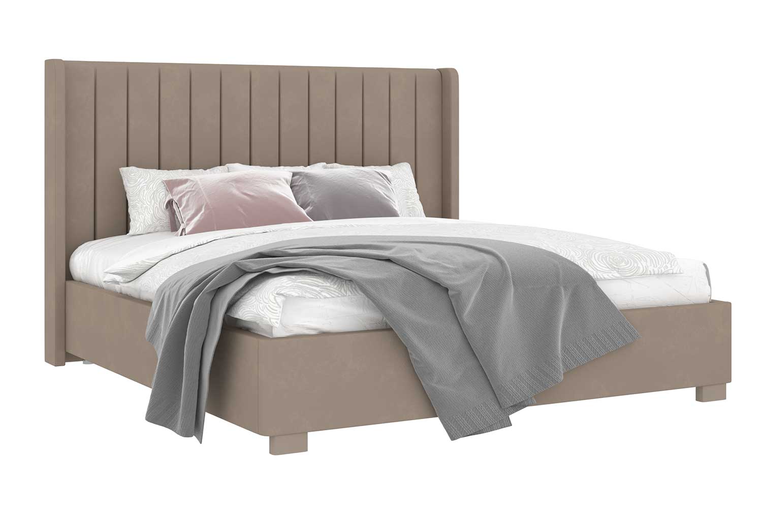 • Кровать выполнена в ткани велюр, коричневый (Omega 14);