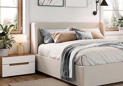 - Кровать без подъемного механизма. Обивка — ткань Ravena biscuit / ОД14. Рекомендуемый размер матраса: 120 х 200 см (приобретается отдельно);