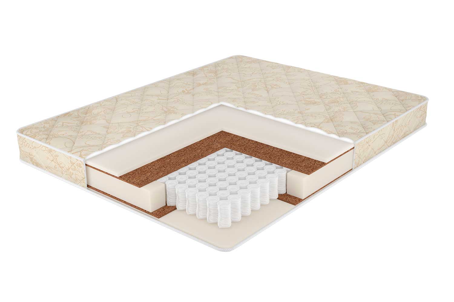 - Дополнительную анатомическую поддержку оказывает кокосовое волокно, которое за счет своей природной жесткости равномерно распределяет нагрузку по матрасу. Кроме того, кокосовое волокно хорошо проводит тепло, воздух, устойчиво к впитыванию запахов и размножению микроорганизмов, увеличивает срок службы пружинного блока;
