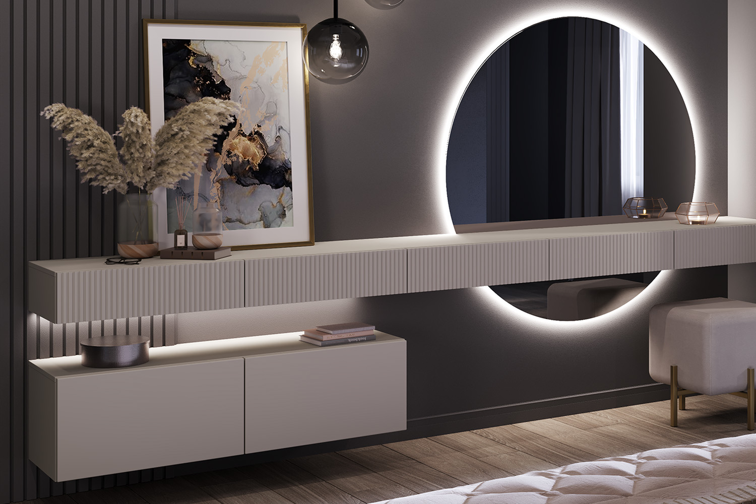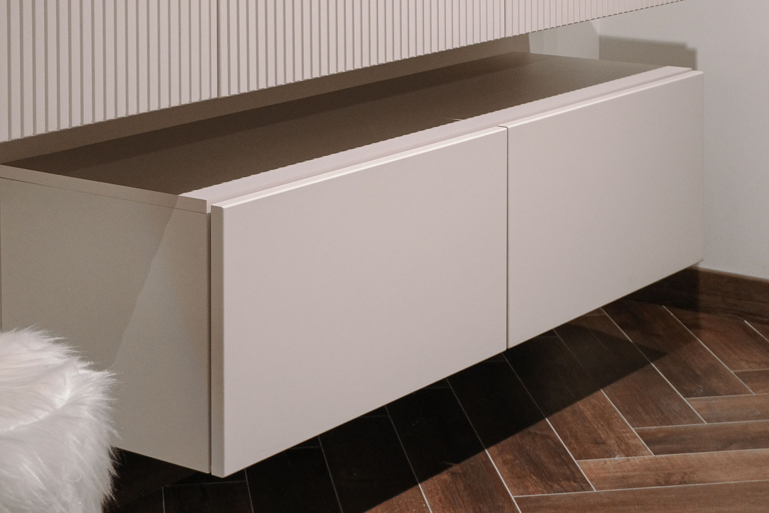 - Тумба Дольче ДЛ-323.02 навесная с двумя выдвижными ящиками и фасадами с фрезеровкой;