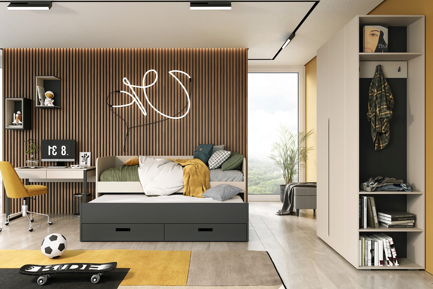 Модули-трансформеры коллекции Интро подходят как для небольших квартир благодаря раздвижным механизмам, так и для просторных жилых пространств благодаря разнообразию модулей, позволяющих удобно и нескучно оформить интерьер.