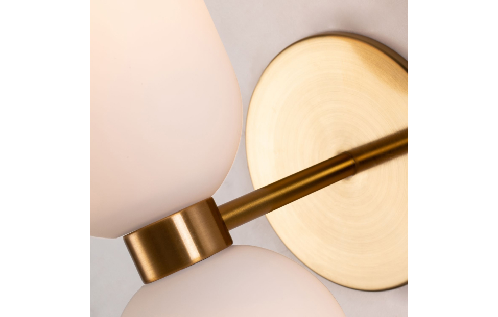Настенный светильник коллекции Amusing с белыми выдувными плафонами и латунным каркасом.
