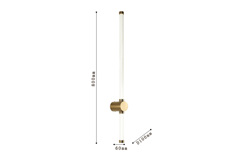 Lignum – настенные светильники LED в актуальном оттенке золота. Светодиодная лента расположена по всей длине плафона, выполненного из рифленого акрила. Размерный ряд от 60 см до 1 метра в высоту расширяет область применения. Акриловые элементы надежно закреплены в центральной части, благодаря чему возможно горизонтальное и вертикальное расположение на поверхности. Центральная часть не вращается.