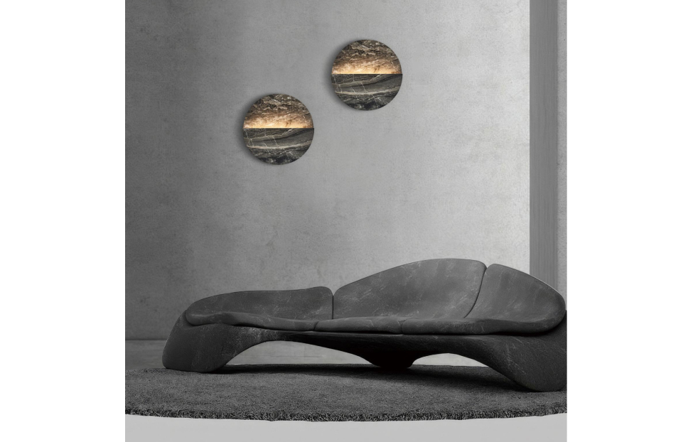 Представляем вам коллекцию Eclipsis, словно созданную самой природой. Настенный светильник представляет собой две половинки диска из керамогранита в цвете сеый мрамор, между которыми струится мягкий свет, создавая завораживающее зрелище, напоминающее затмение небесных тел. Узор камня оживает благодаря игре света (LED-модуль с рассеивателем из акрила белого цвета) и усиливает оптический эффект.