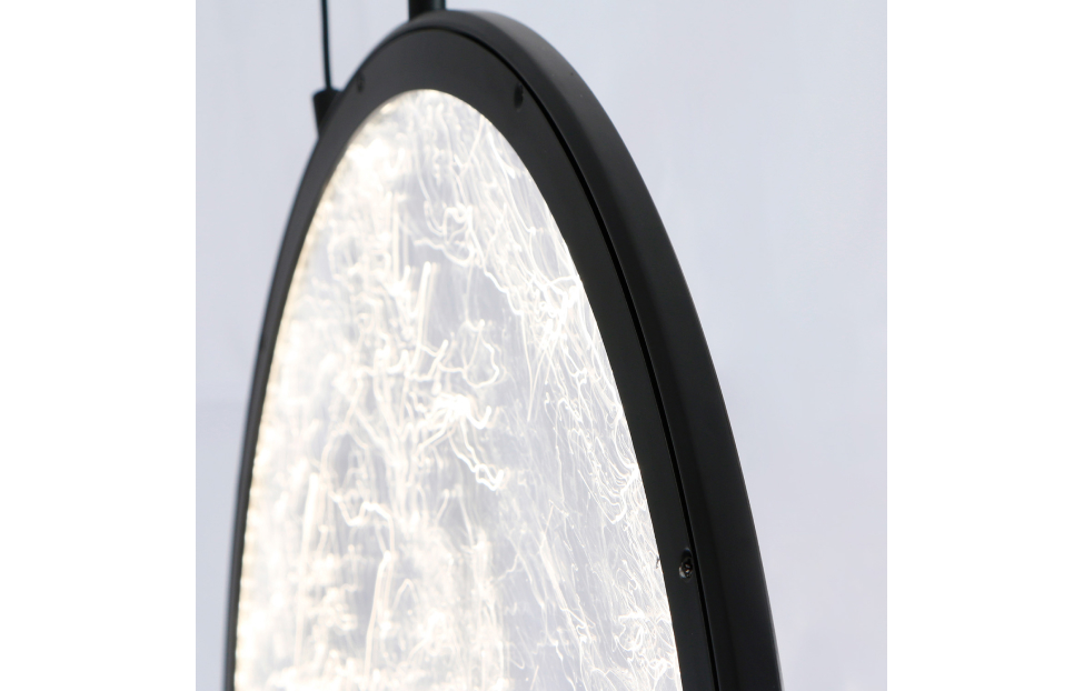 При создании коллекции светильников Imma вдохновлялись пейзажной живописью тушью. Светильники задуманы как световые скульптуры с чувственными, завораживающими рисунками, которые, пропуская свет, создают неповторимые цветовые переходы. Металлический каркас в цвете матовый черный, плафон из акрила с эффектом дыма, лента LED расположена по внутреннему периметру плафона, регулируемая высота.