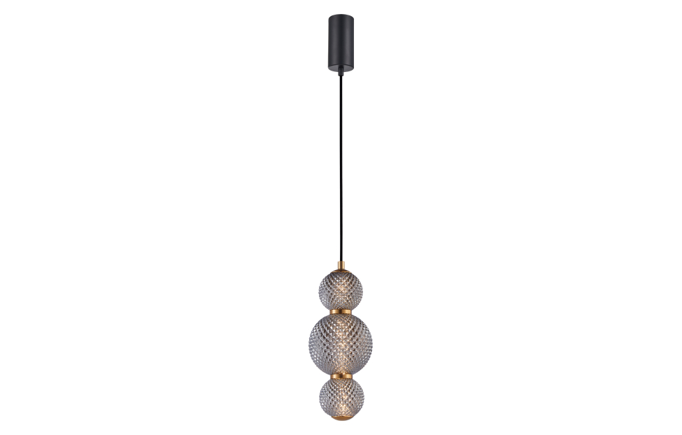 Коллекция Kiran – это гармония стекла и света. Стеклянные фактурные плафоны раскрывают свой характер в мягком струящемся свете и узорных отражениях на потолке, стенах, предметах мебели. В качестве источника света используется трубка с LED-модулем, проходящая внутри плафонов из фактурного стекла дымчато-серого цвета. Декоративный ободок золотого цвета добавляет сдержанного блеска в дизайн коллекции и придает ей особую привлекательность. Регулируемая высота.