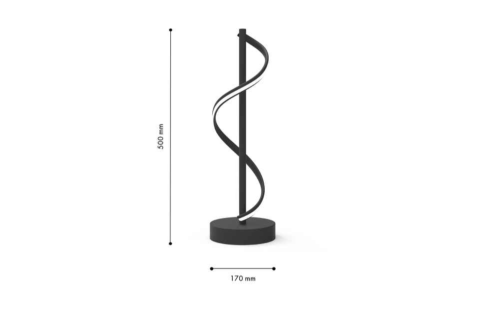 Настольный светильник Locket представлен в чёрном цвете. Вытянутый жесткий профиль декорирован гибким профилем, который оснащен LED-лентой и мягкой волной оборачивается вокруг жесткого профиля. Выключатель на проводе.